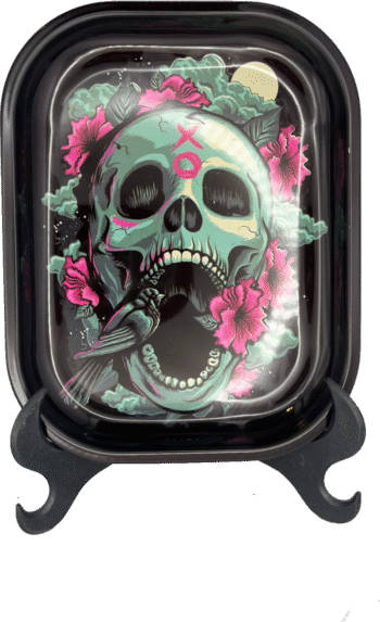 Bandeja para Liar Calavera y Flores – Bandeja Metálica de Fumador con Diseño Artístico y Original