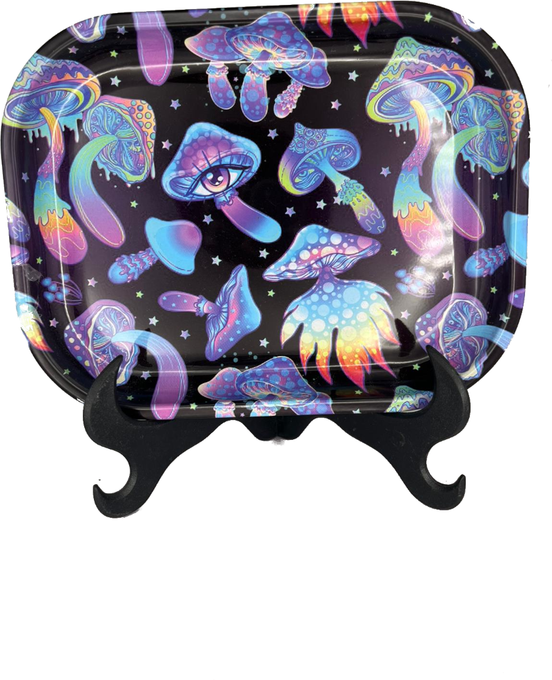 Bandeja metálica para liar con diseño de setas psicodélicas. Colorida, original y resistente, perfecta para fumadores y amantes del arte alternativo.