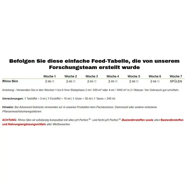 Rhino Skin es un producto para nuestros cultivos que protegerá tus cosechas dando una armadura de silicatos a las células de tus plantas, permitiendo que estas soporten cargas mucho más pesadas. Soportarán con facilidad los enormes cogollos y sus ramas no se doblarán.
