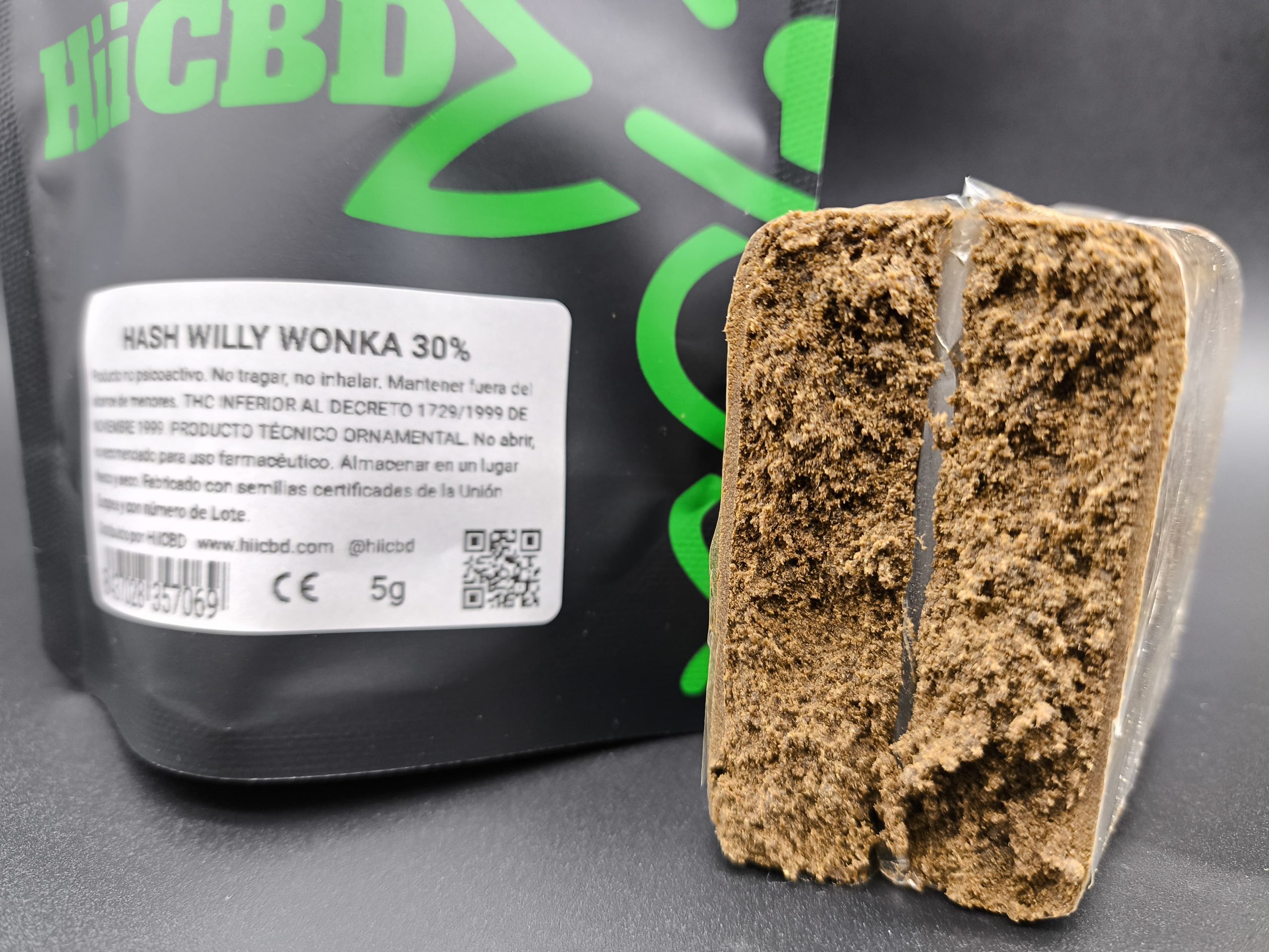 Willy Wonka CBD Hash – Hachís legal de cáñamo con aroma dulce, alto contenido en cannabidiol y textura prensada suave. 100% legal en España.